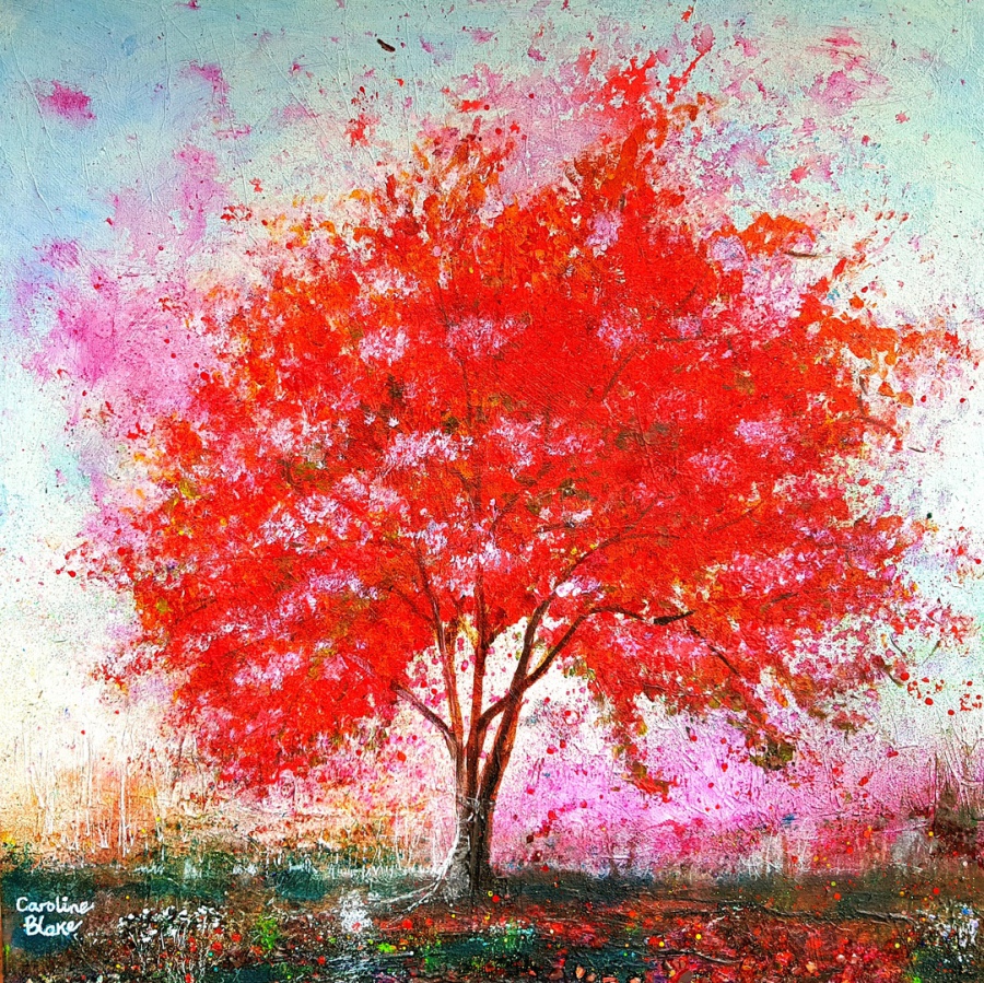 I paint impressionistic, modern style, vividly coloured, luminous trees and plants using acrylics and mixed media. My pieces feature vibrant pearlescent or fluorescent colours and are embellished with crystal gems, beads and glitter. Tissue paper and other mediums are used to make sumptuous and beautifully textured effects that catch the light. I would love you to feel a connection with one of my paintings, and that it will brighten and transform your home with character and warmth.